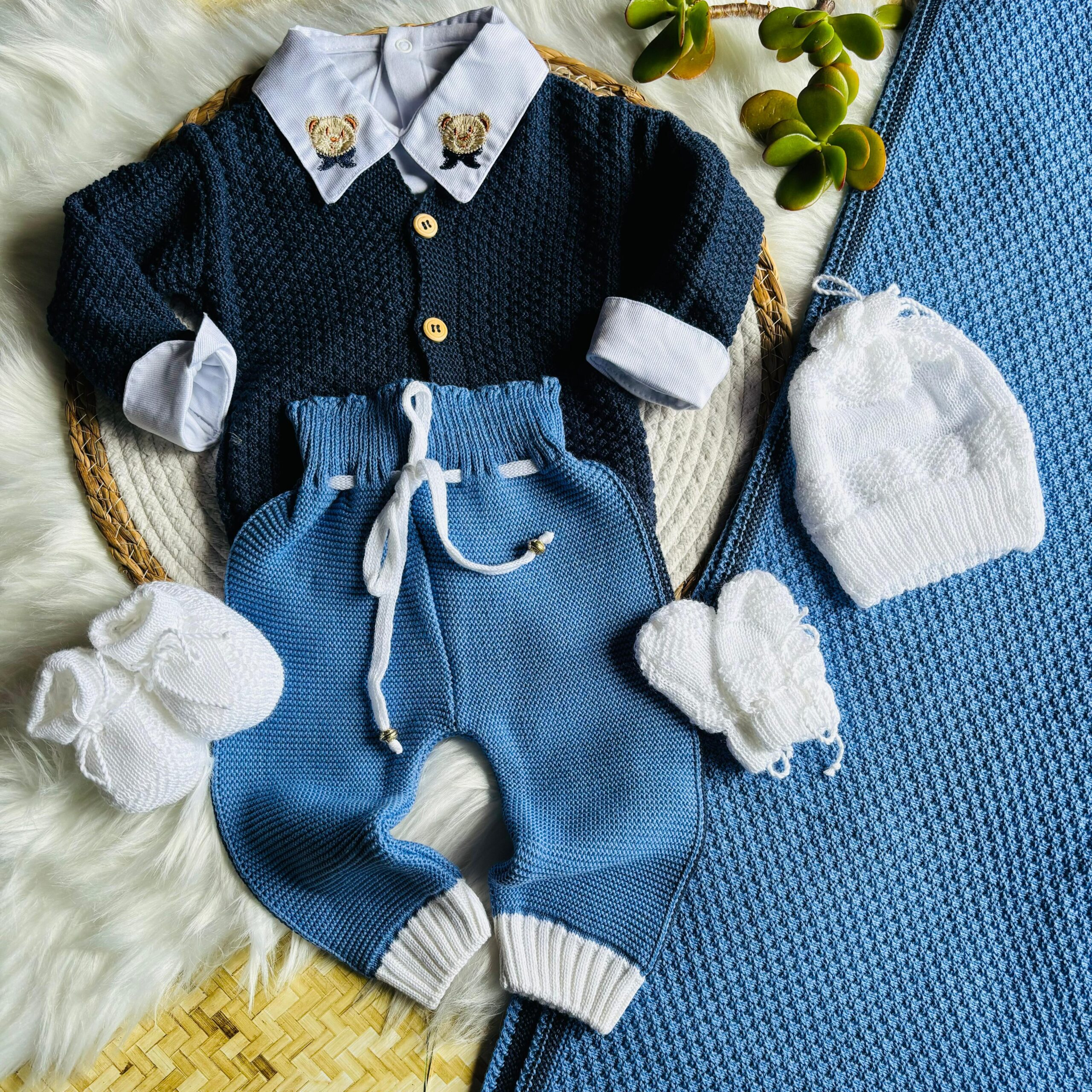 Confeccionado em tricot de linha 100% acrílico antialérgico.