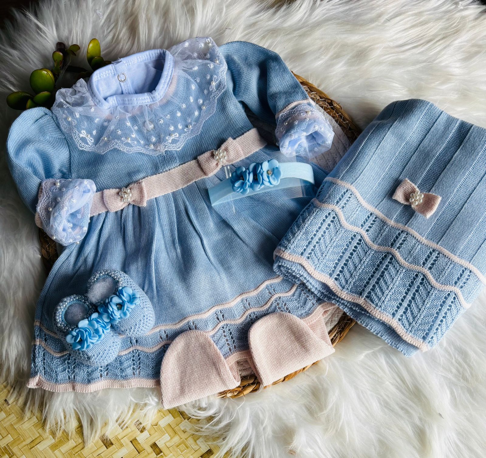 01 Manta fio toda trabalhada (medidas aproximadas em: 80cm x 80cm).