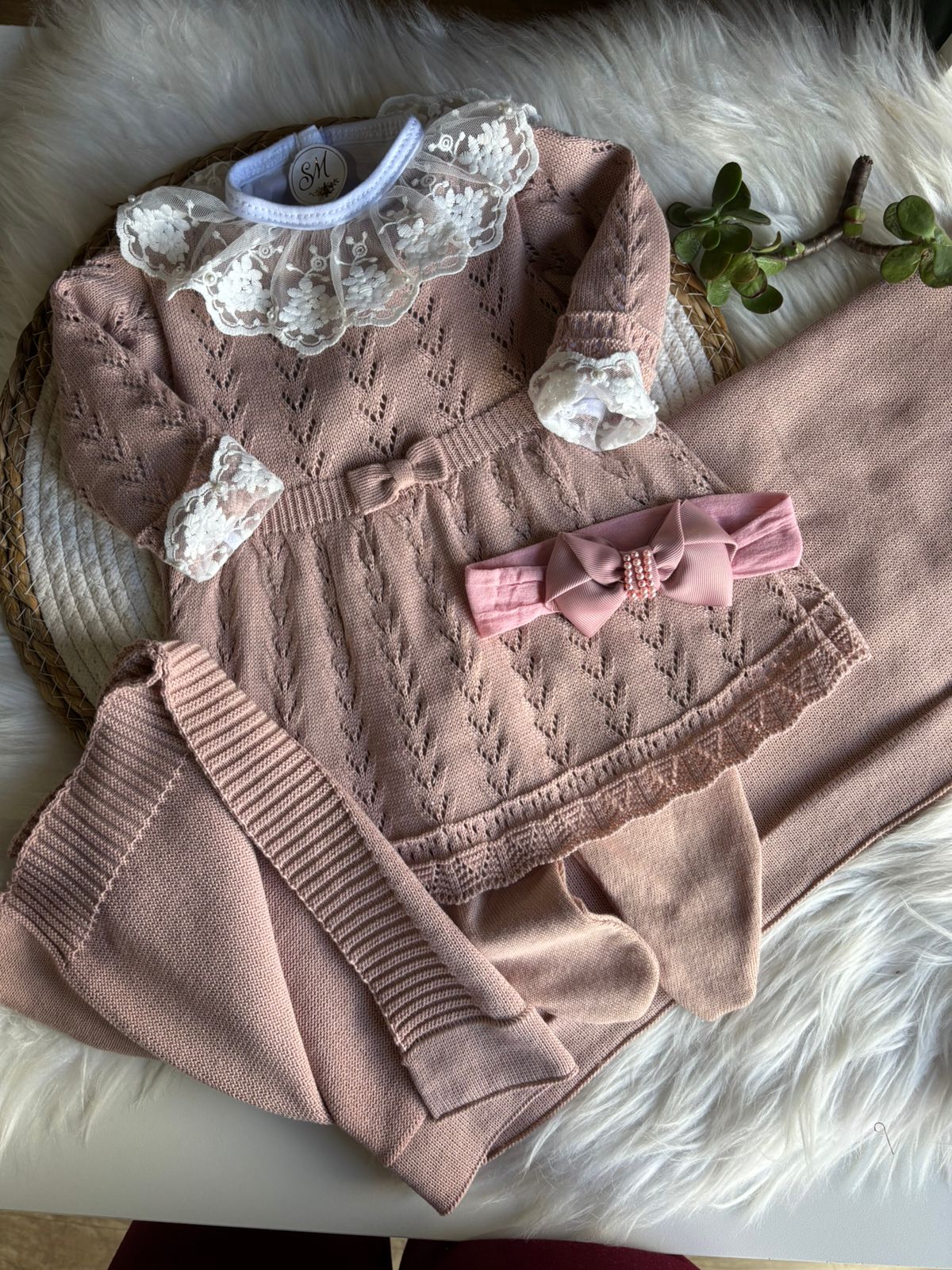 01 Manta com aplicação de laço em Tricot (medidas aproximadas em: 80cm x 80cm).